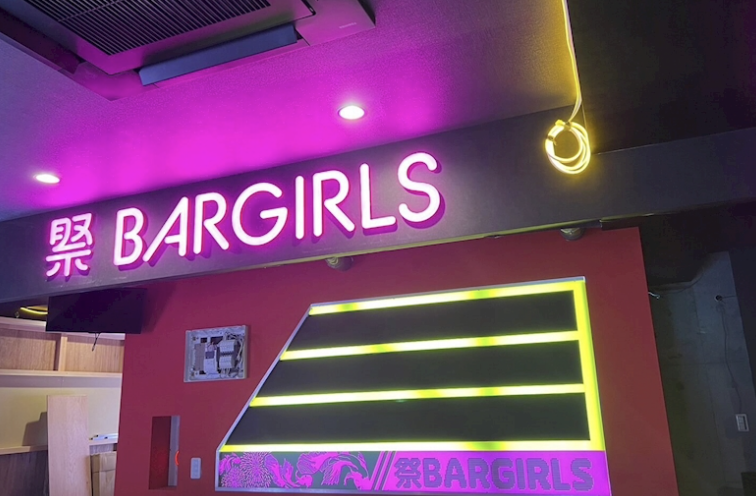 ガールズバー「祭BARGIRLS」は「和風サイバーな世界でお祭り騒ぎできる」がコンセプトです。Yシャツとショートパンツに身を包んだ元気なスタッフと、近未来風の店内で非日常的な体験ができます。カラオケやダーツもあるので、みんなで盛り上がれるのが魅力です。お祭り好きな人や元気になりたい人におすすめのお店です。