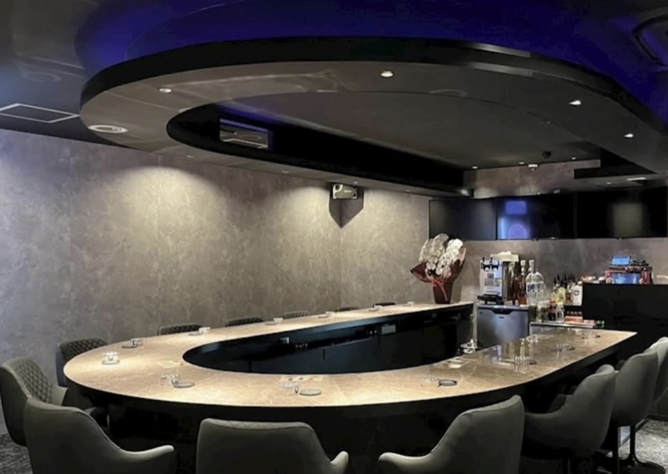 店内は黒基調で赤いネオンライトが輝く、洗練されたゴージャスな雰囲気になっています。