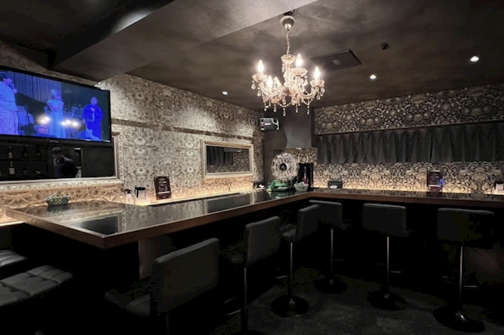 店内は黒基調でシャンデリアが輝く、ラグジュアリーな雰囲気になっています。